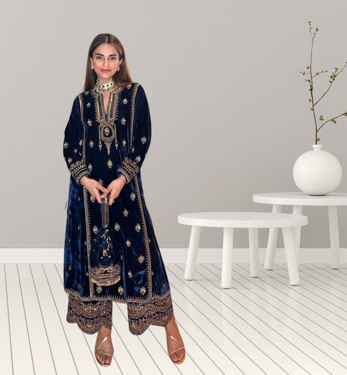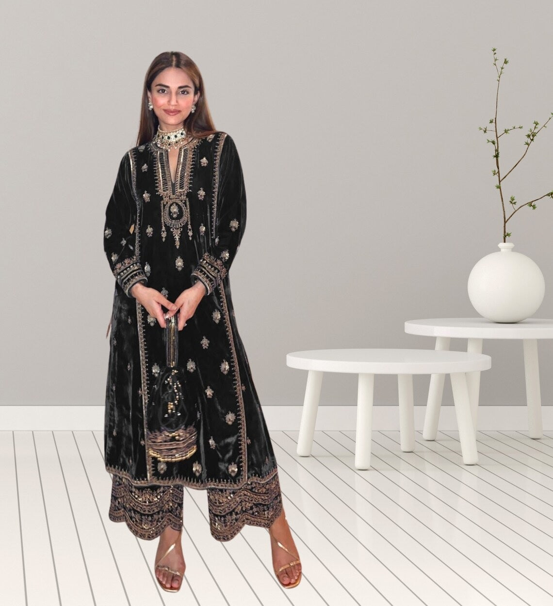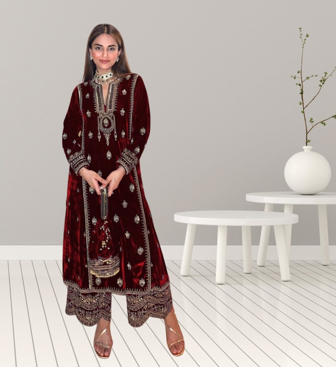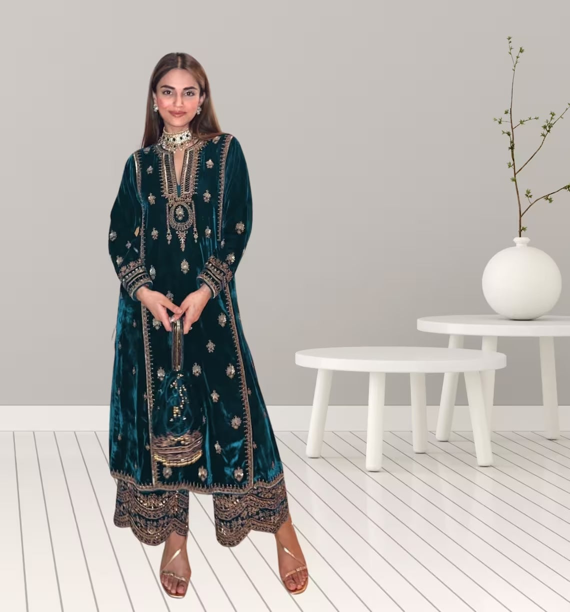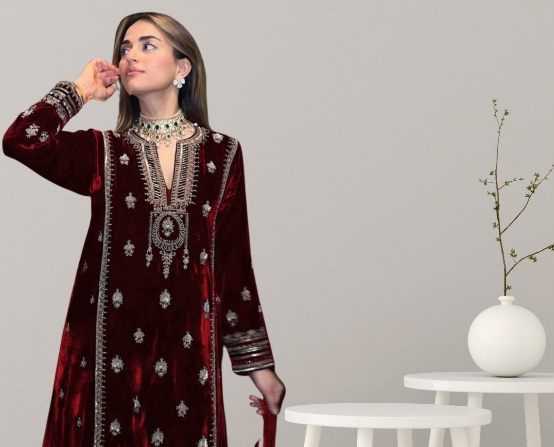 Top Fabric :- Pure Viscose Velvet With Embroidery Sequence Work