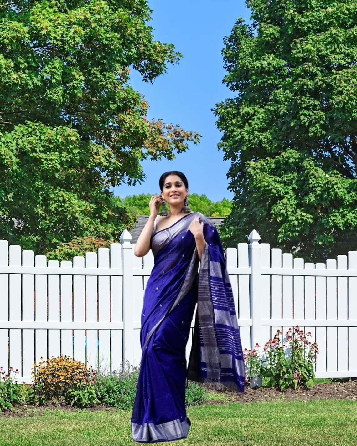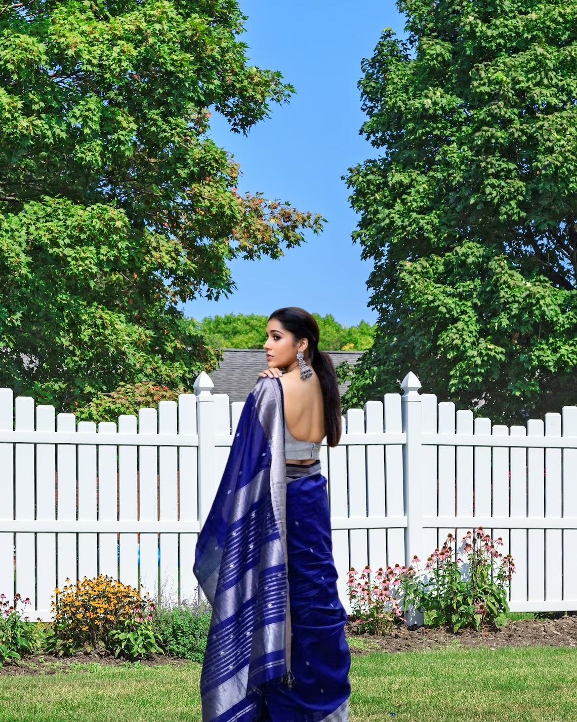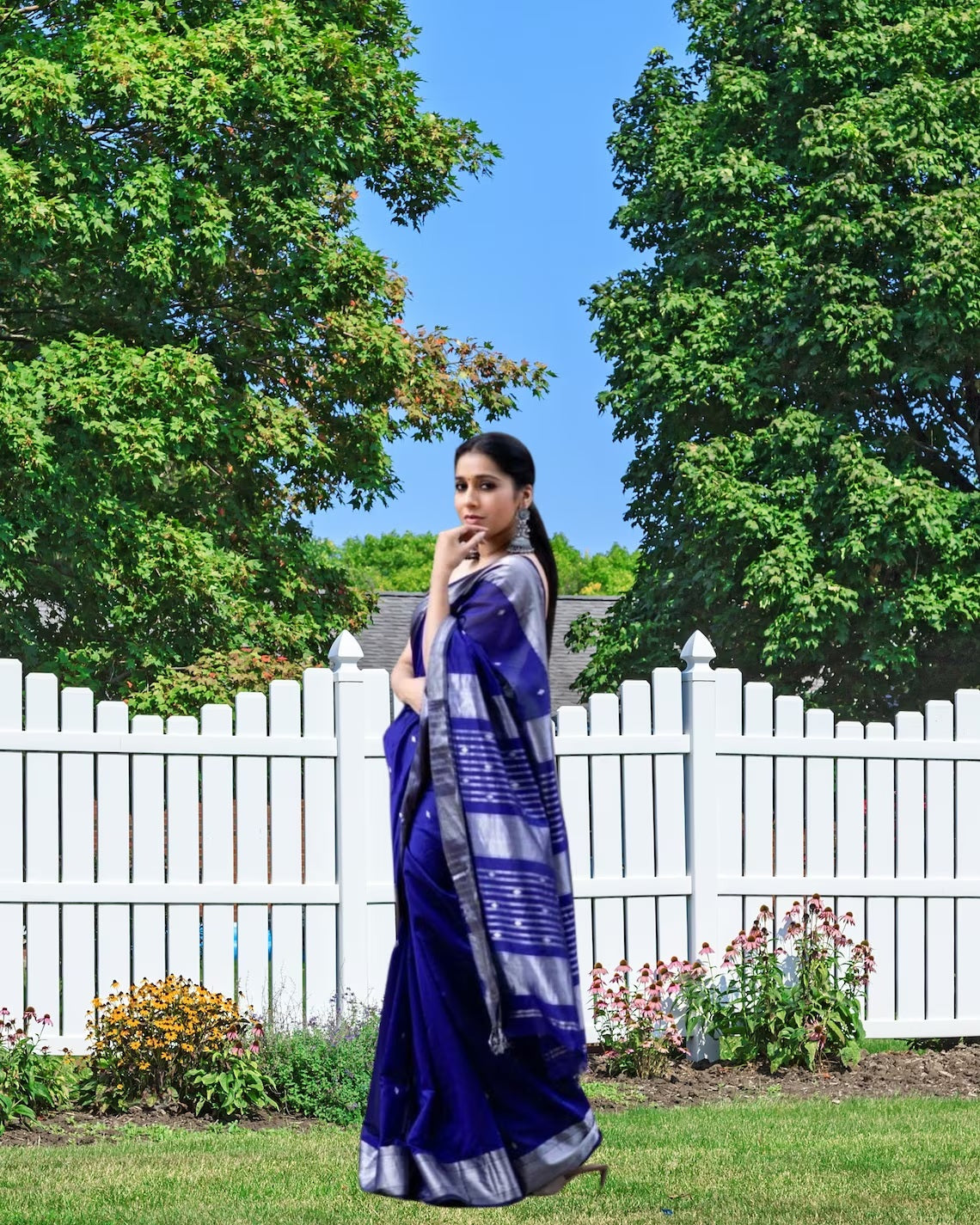 Royal Blue Soft Lichi Silk & Jacquard Saree With Blouse