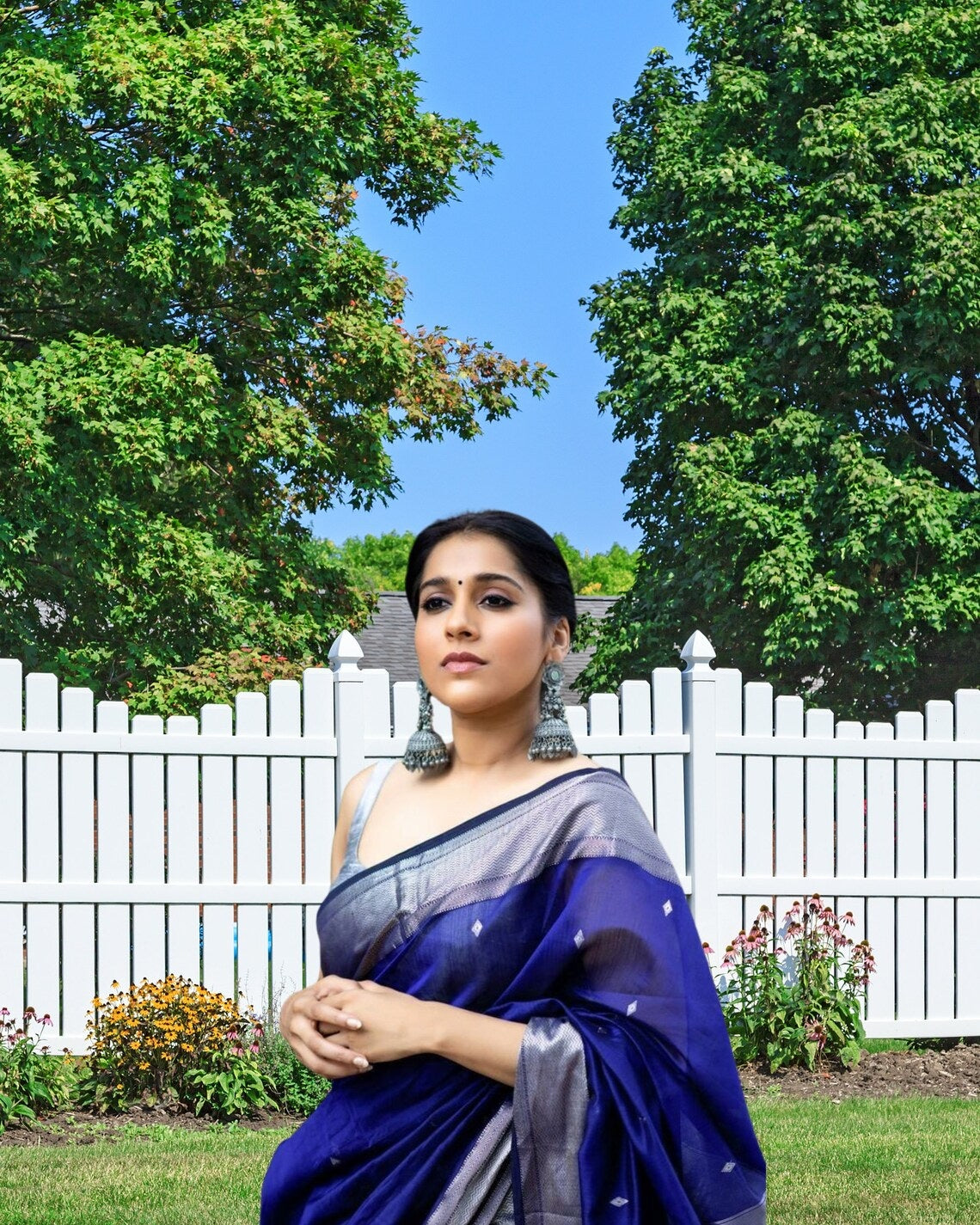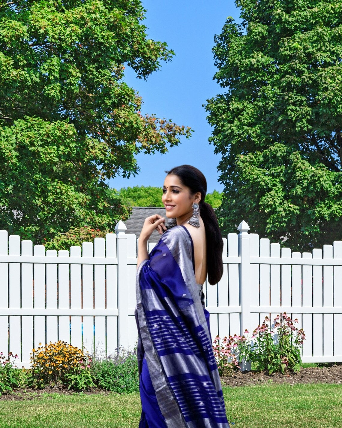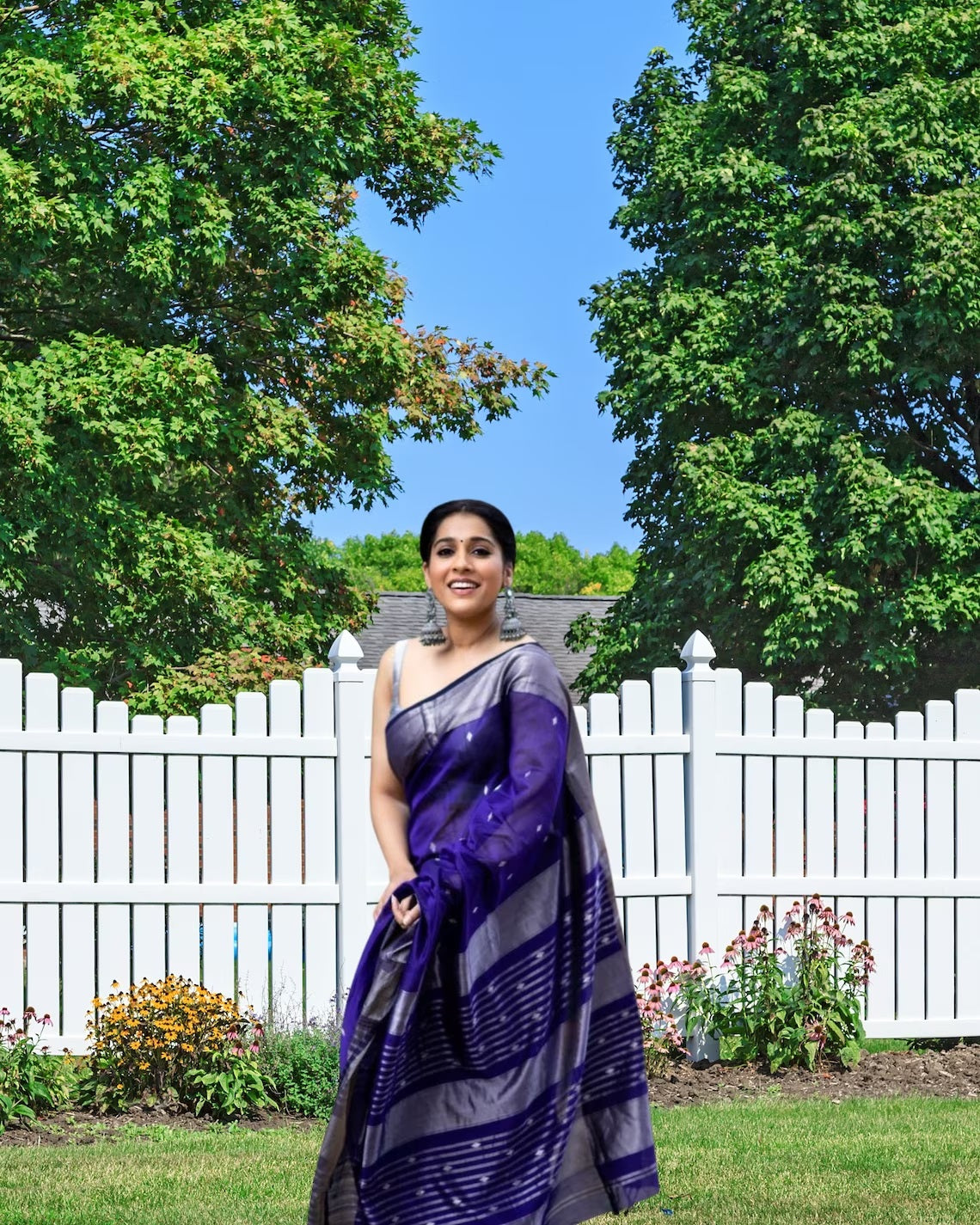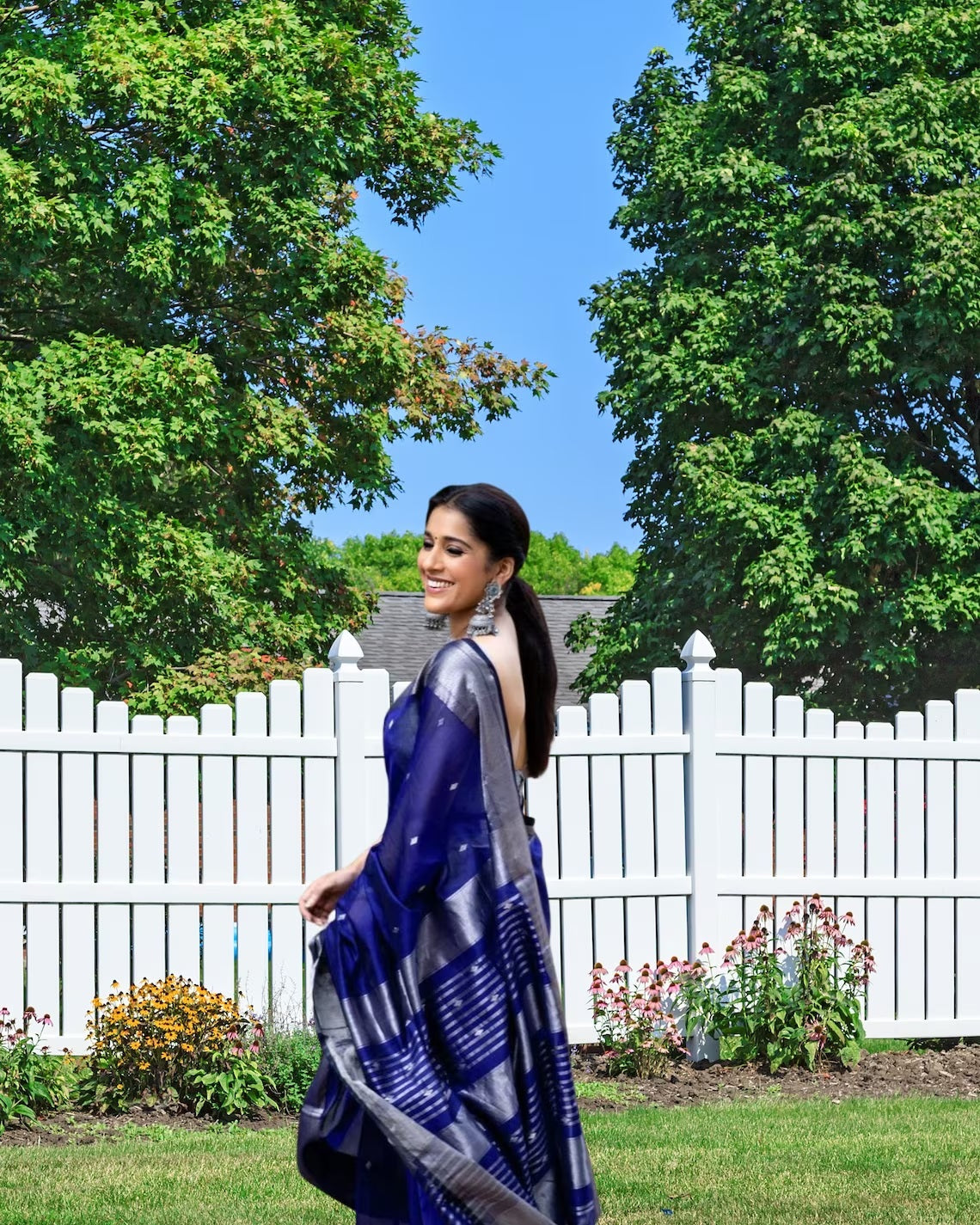 Royal Blue Soft Lichi Silk & Jacquard Saree With Blouse