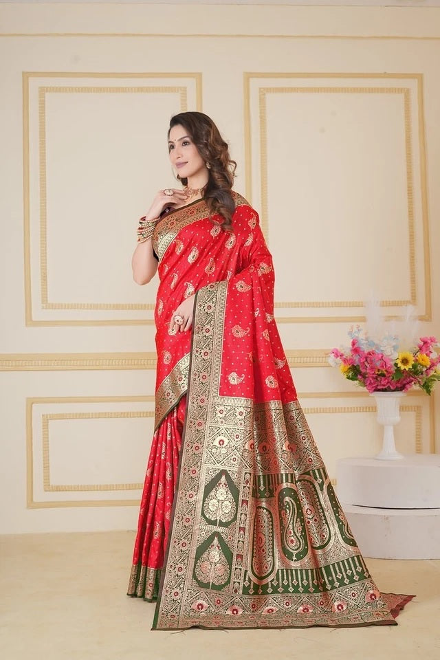 Traditionl Soft Silk Weaving Saree With Banarasi Jari Work With Blouse11-VF