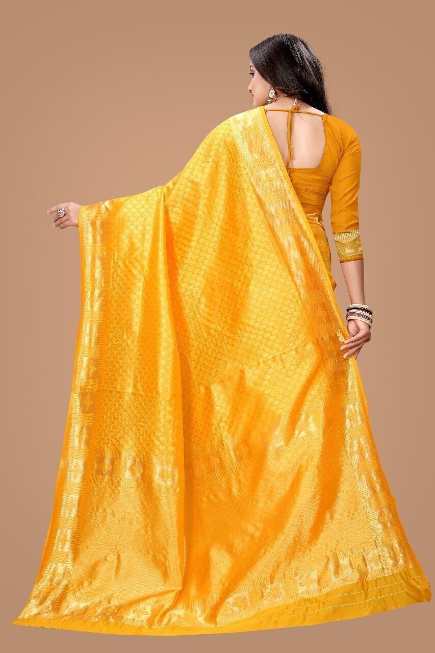 Yellow Color Soft Lichi Silk Sari