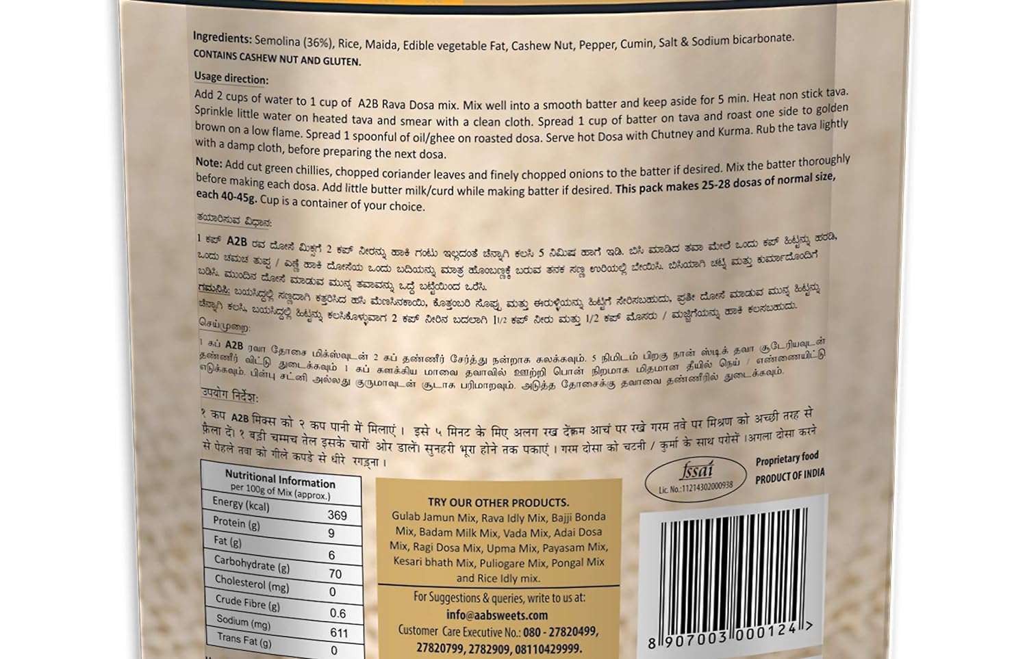 A2B - Adyar Ananda Bhavan Rava Dosa Mix - 200 gm