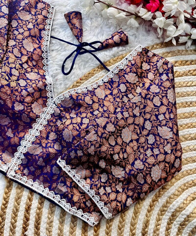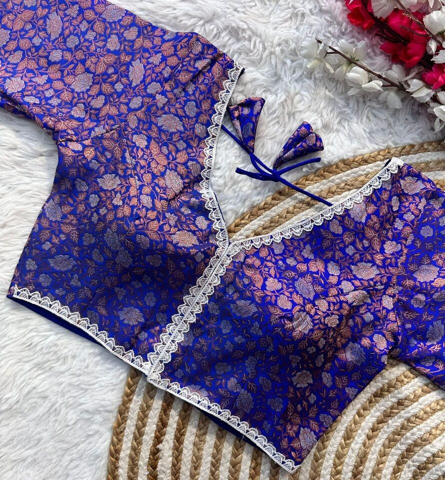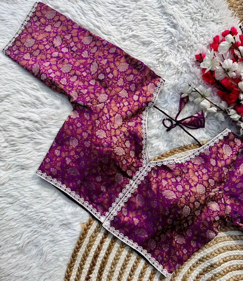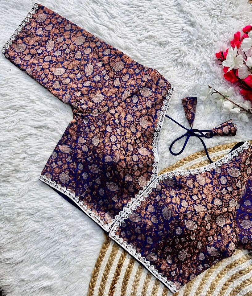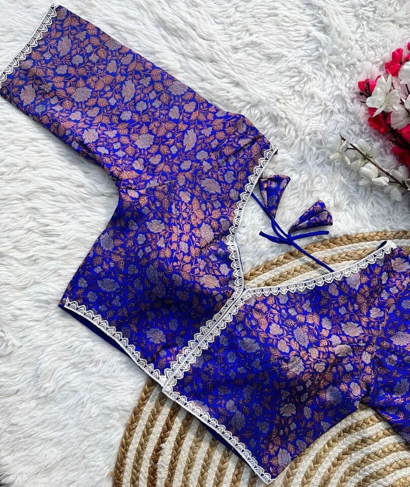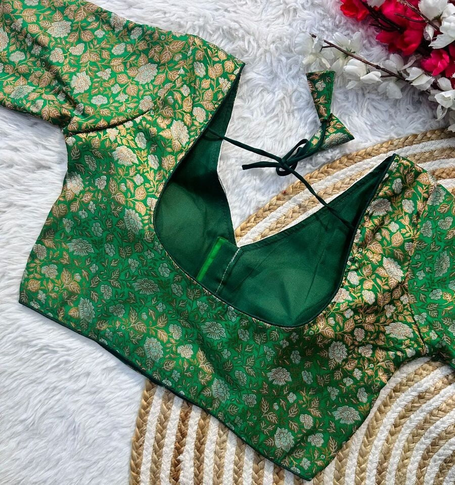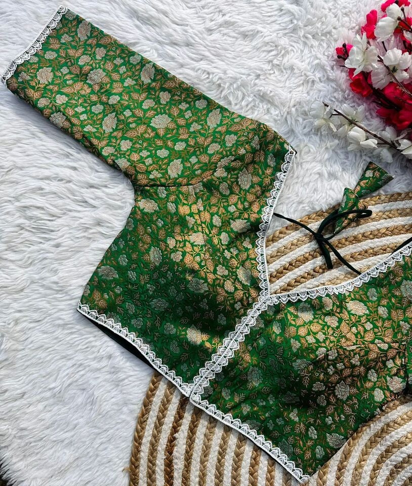 Banaras Silk Blouse Golden And Silver Jari Blouse, Ready Made Blouse