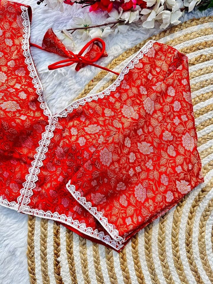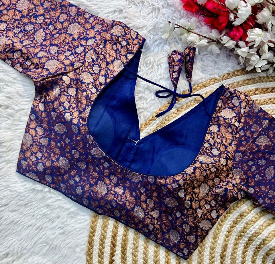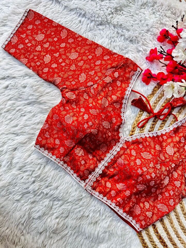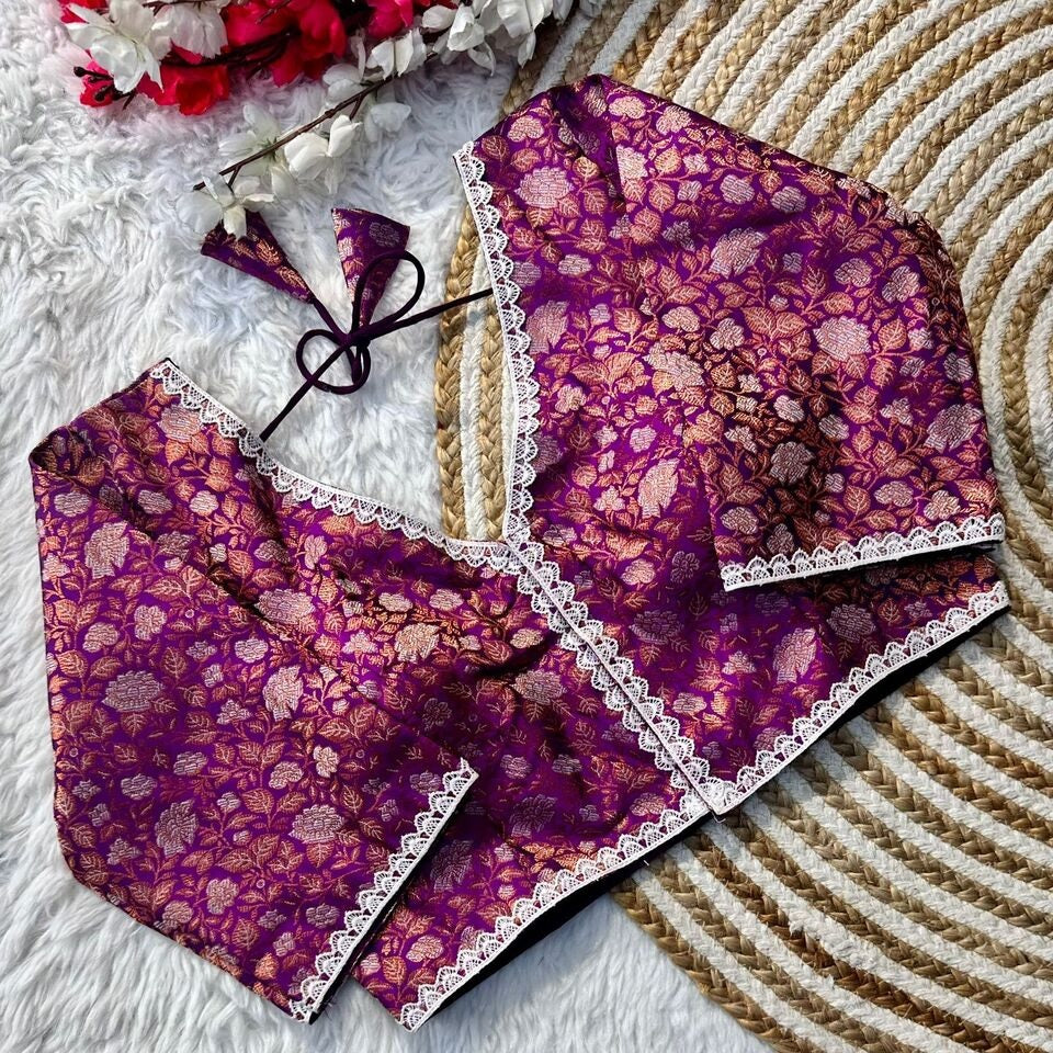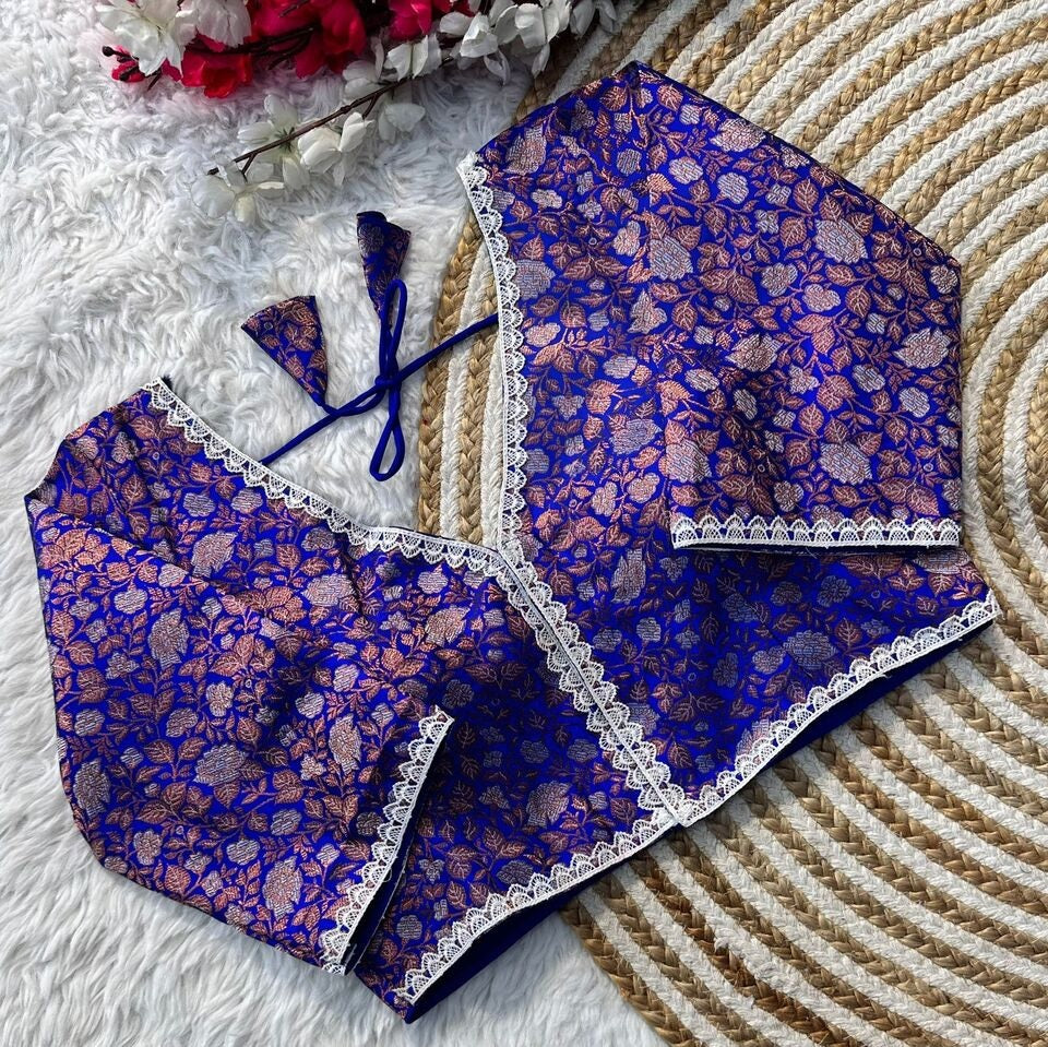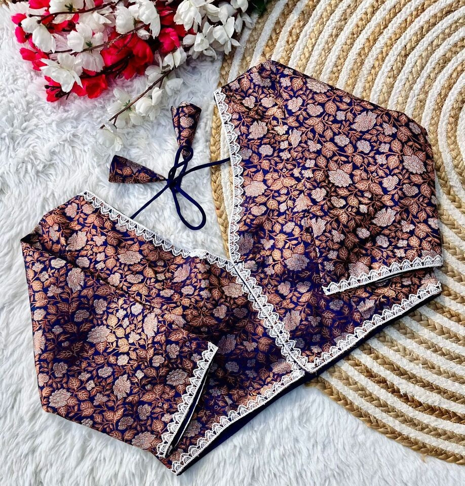 Banaras Silk Blouse Golden And Silver Jari Blouse, Ready Made Blouse
