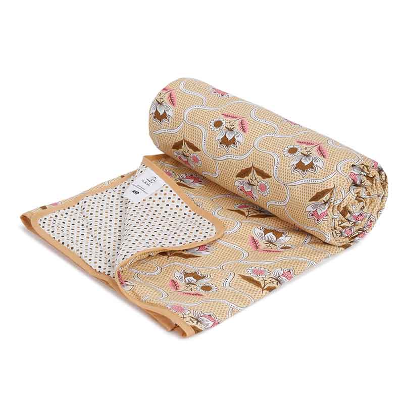 100% Cotton Dohar: The Naksh comforter double bed collection is made from cotton fabric that can be used in any season and is perfect for your double or double bed. We Our cotton quilt and comforter double bed are breathable, and the colour used in our summer blankets is safe for even the most sensitive skin. The cotton blanket is perfect to keep your body cool in summer and stay warm those blankets double for winter days. The Cotton Dohar double bed easily soaks up sweat and maintains your body temperature by absorbing the body heat. The double dohar keeps you cool and helps you sleep better and comfortably in the hot season. The lightweight fabric and super soft texture of our blankets for double bed, double bed blankets for winter and cotton comforters do not weigh you down and let you sleep peacefully. Stay cosy on your cotton bed, sofa or almost anywhere with this pure dohar double bed cotton fabric and also decorate your bedroom with this mellow, printed Cotton Dohar from Naksh.