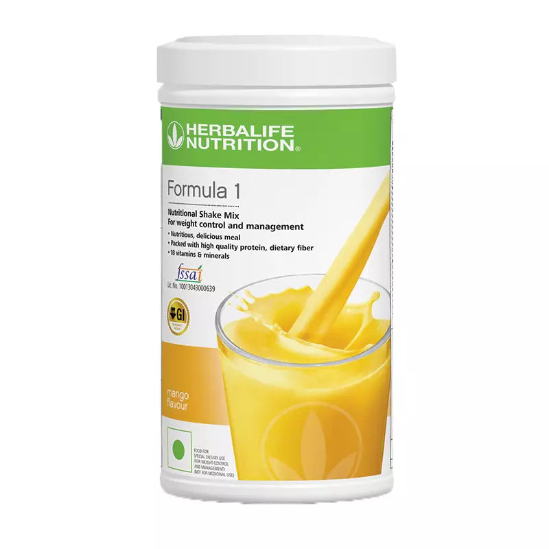 Elevate your daily nutrition with Herbalife Formula 1 Healthy Meal Nutritional Shake. This versatile drink delivers 17-24g of high-quality protein per serving (when prepared with 8 fl. oz. of nonfat milk or one serving of Protein Drink Mix), along with 21 essential vitamins and minerals. With 0 cholesterol and 0 trans fats, it's a convenient way to integrate beneficial nutrients into your routine. Explore delicious flavors like Vanilla, Chocolate, Orange-Banana, Mango, and Kulfi. Perfect for a quick and easy preparation!