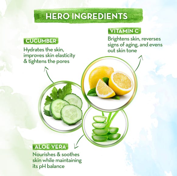 • Vitamin C in this cucumber toner supports the production of healthy collagen that brightens the complexion and boosts skin’s firmness. Witch Hazel reduces inflammation, tightens skin pores, and soothes acne-prone sensitive skin. The alcohol-free formula of this toner helps balance the pH level of your skin.