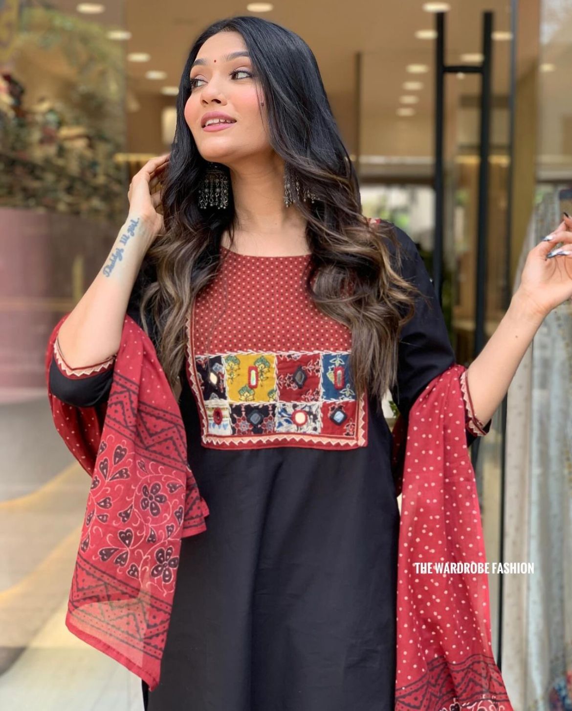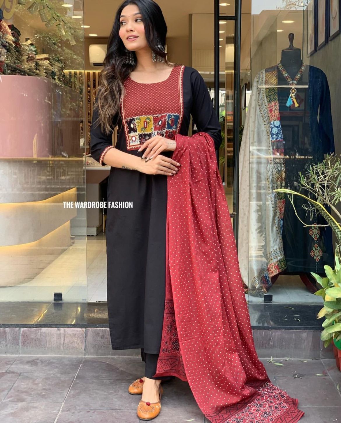 Rayon With Mirror Work Kurti Pant With Dupatta