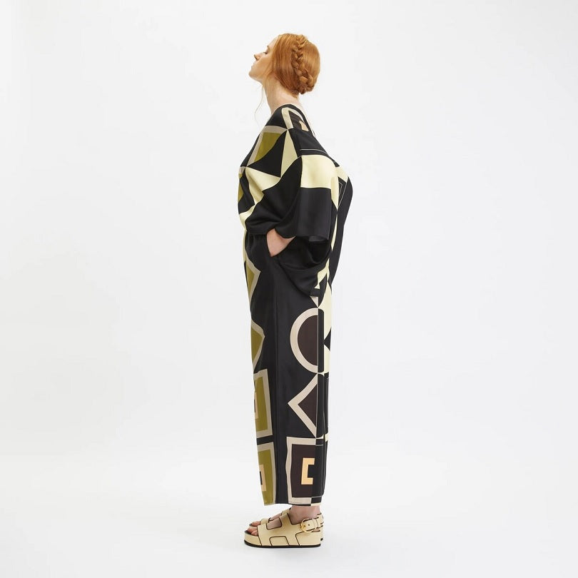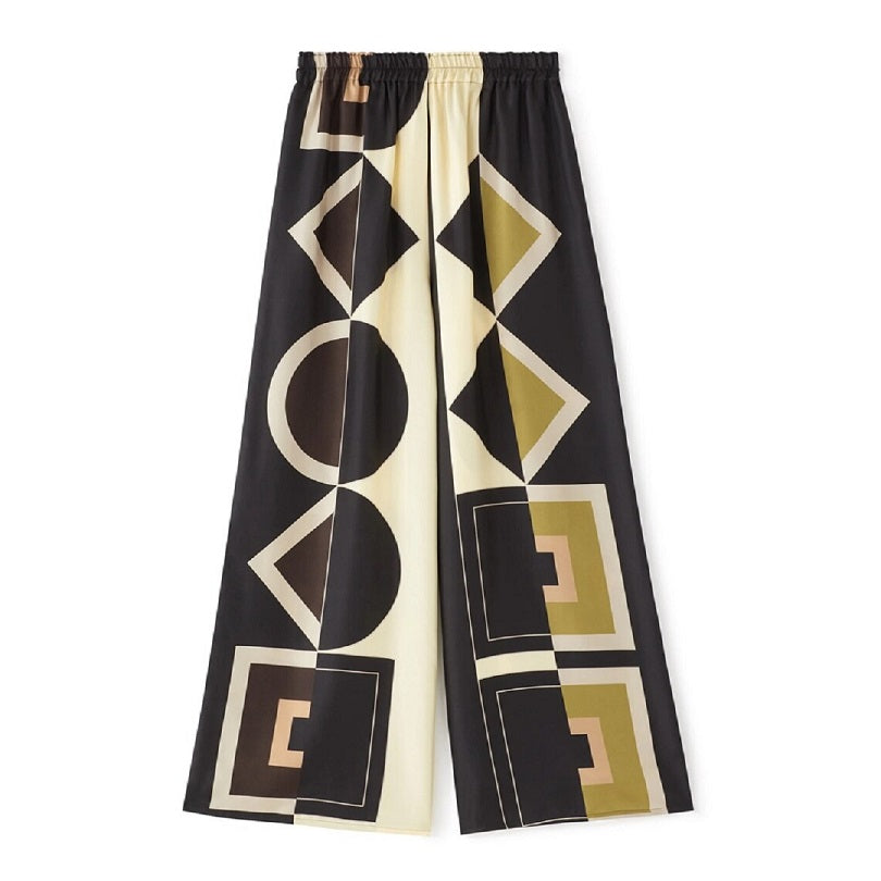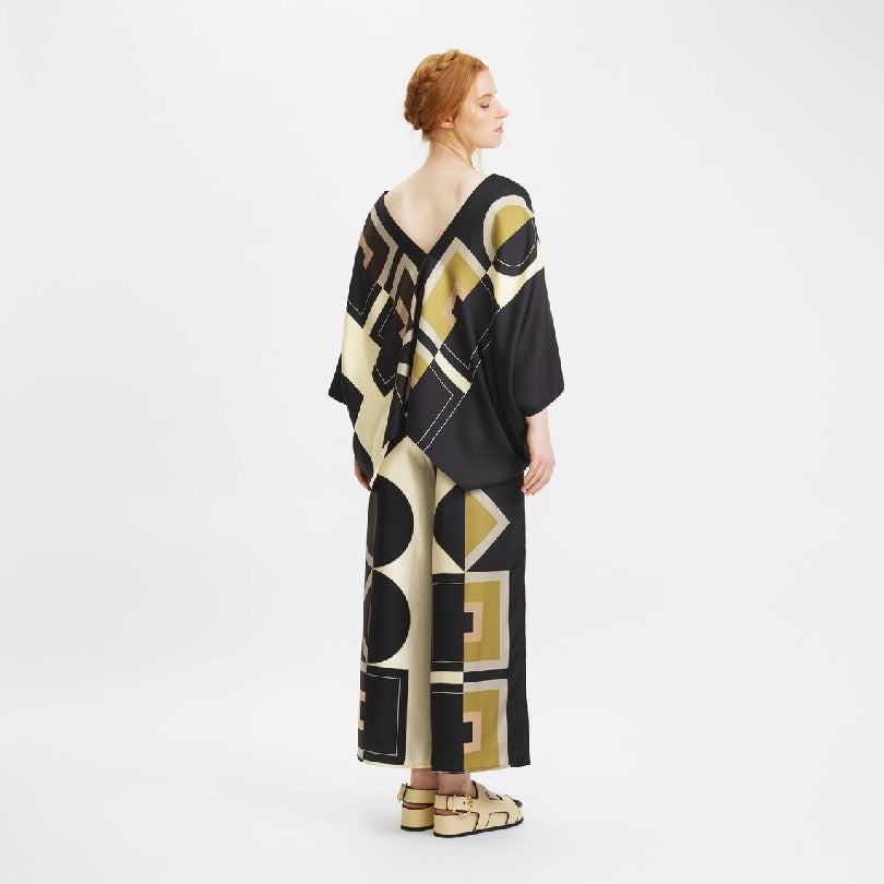Soft Satin Silk Two Piece Top And Pant Geometric Printed Co Ord Set J5786