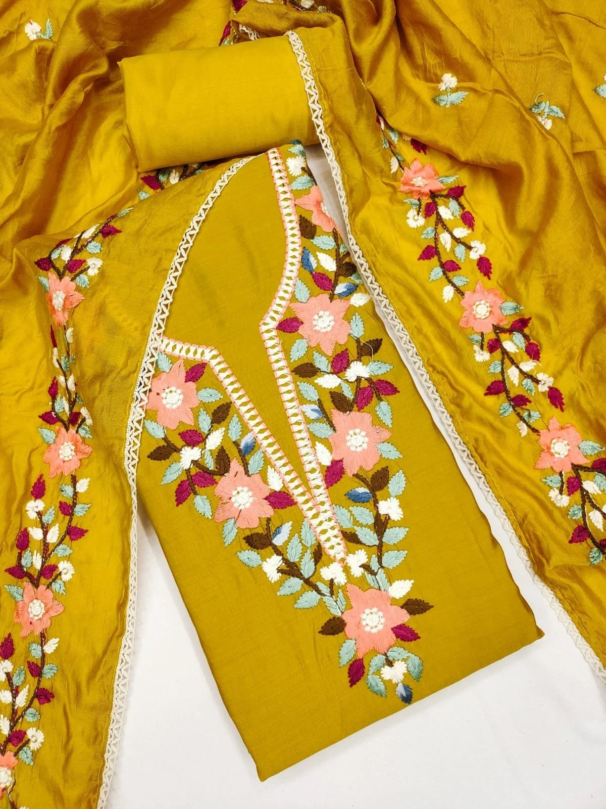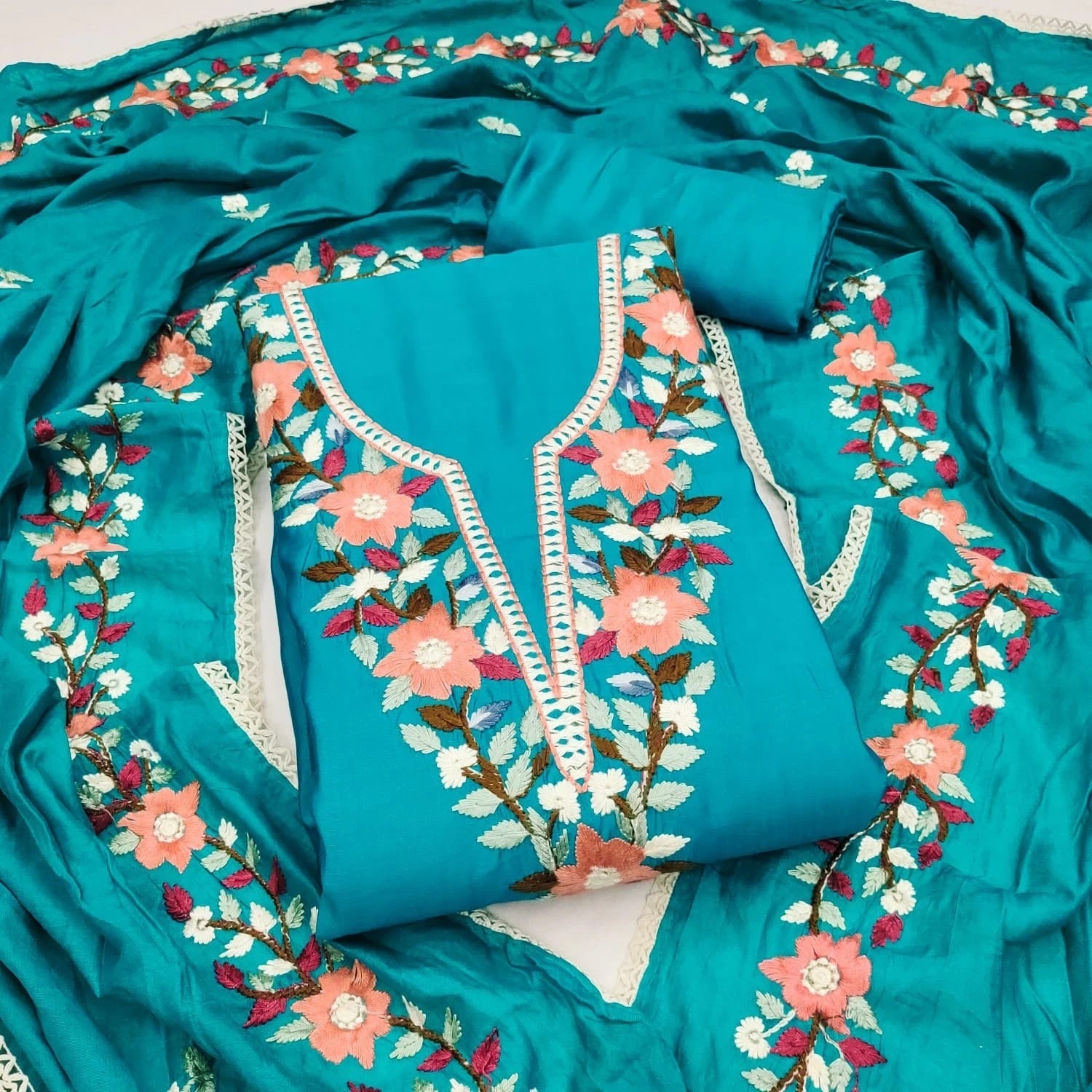 Traditional Beautiful Roman Silk Designer Top Bottom & Dupatta 12-VF