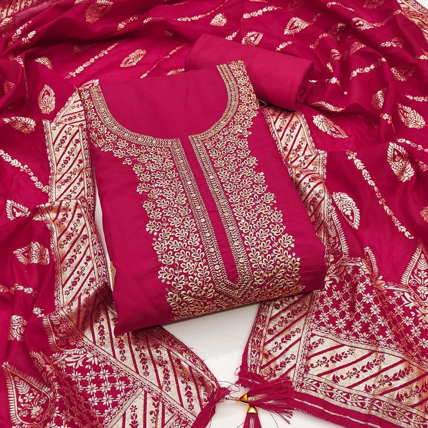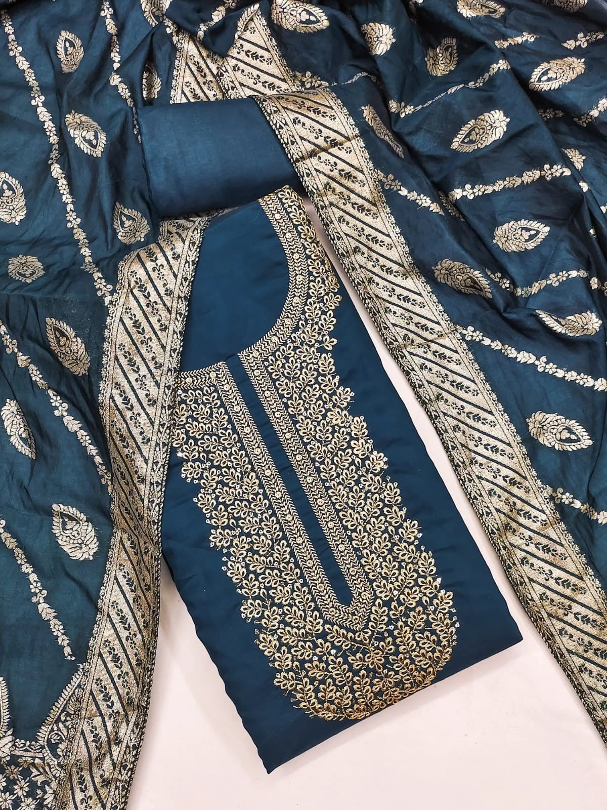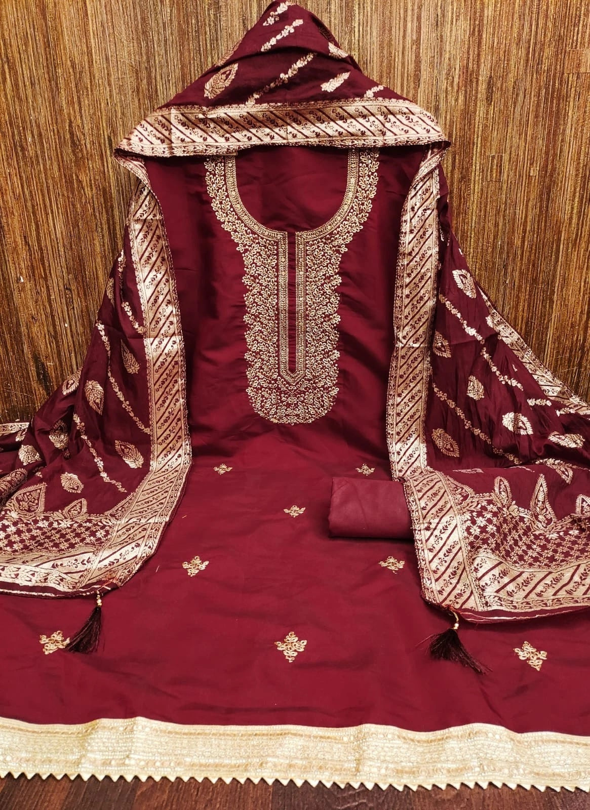 Traditional Wedding Wear Indian Roman Silk Designer Top Bottom & Dupatta 12-VF