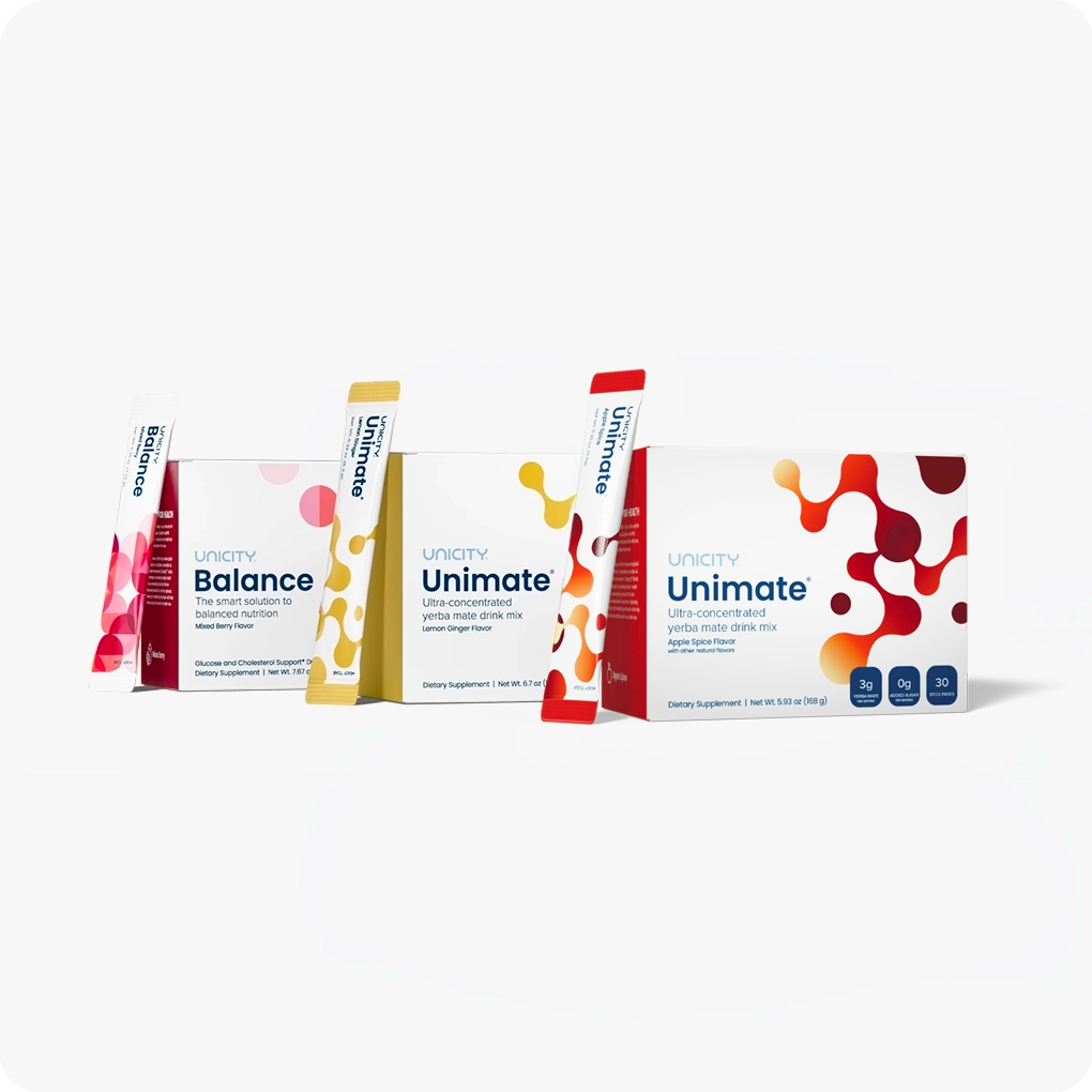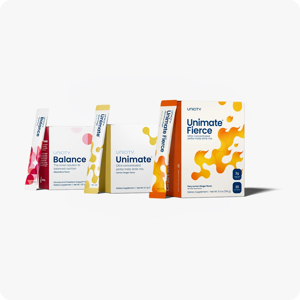 Unicity Unimate Variety Flavors (30 Pack Each) & Balance Mixed Berry 30 Pack Combo Set