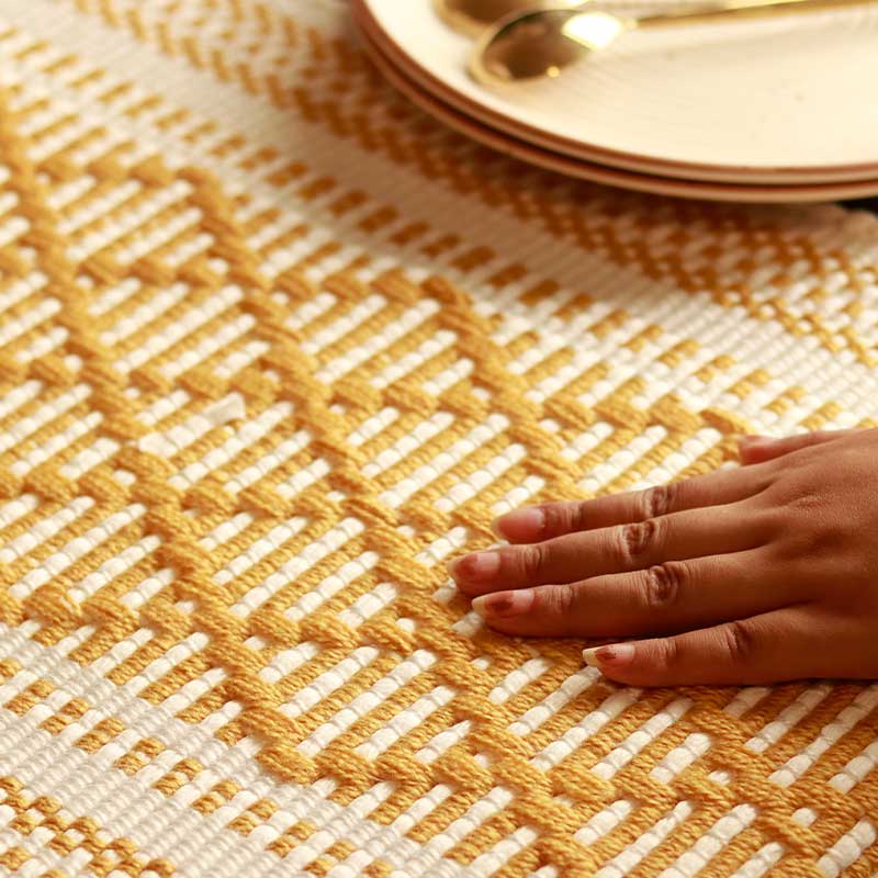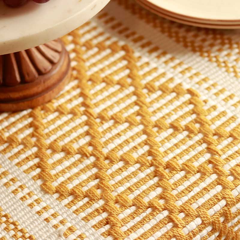 Yellow & White Hand-loomed Cotton Runner | 72 x 13 Inches